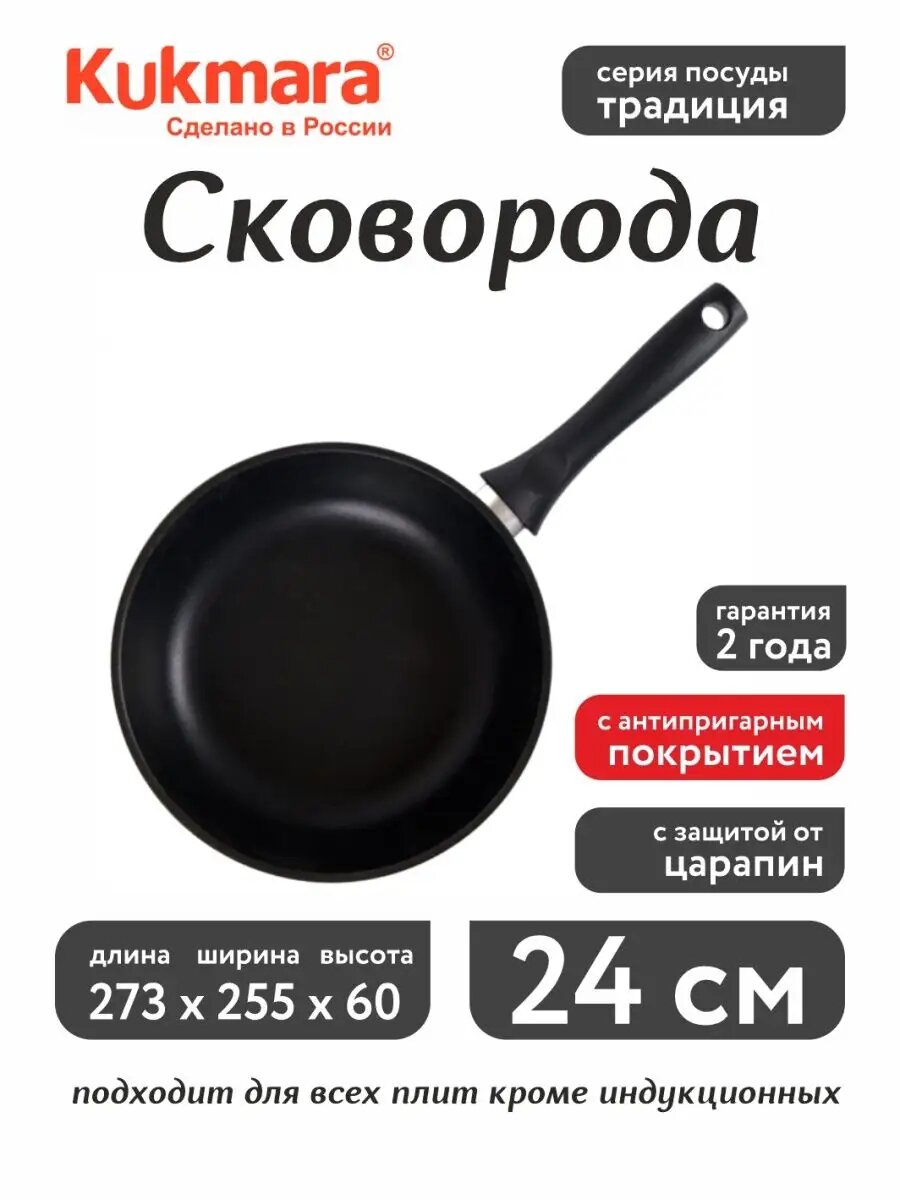 KUKMARA Сковорода «Традиция», d=26 см, пластиковая ручка, антипригарное покрытие, цвет чёрный