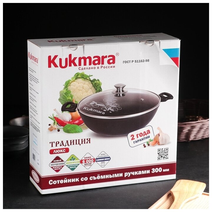Сотейник Kukmara "Традиция", 30*8,5 см, стеклянная крышка, съемная ручка