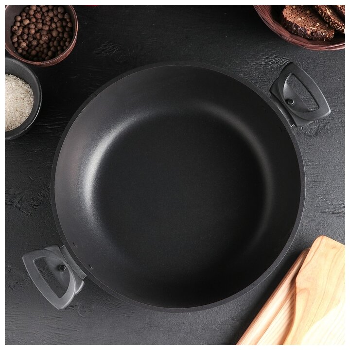 Сотейник "Традиция", d=30 см, стеклянная крышка, съёмные ручки, антипригарное покрытие, цвет чёрный