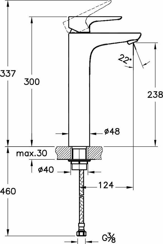 Смеситель для раковины Vitra X-Line однозахватный, высокий излив 238мм, цвет: хром A42322EXP