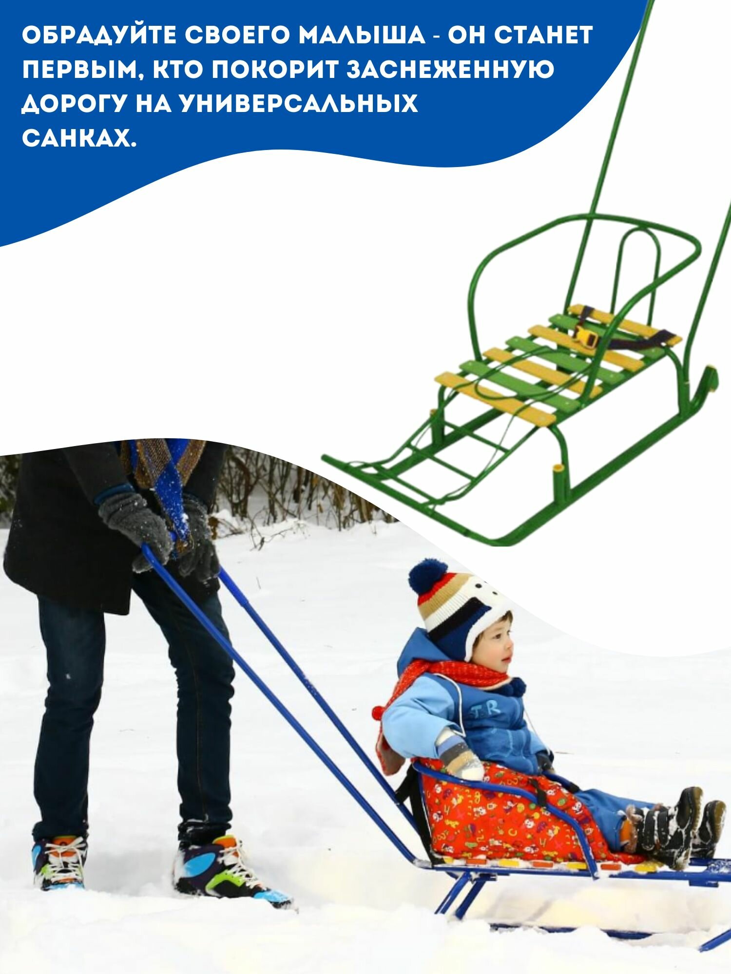 Санки Ника детям "Тимка 5 комфорт+", зеленые, съемная ручка, с ремнем безопасности (Т5К+/З)