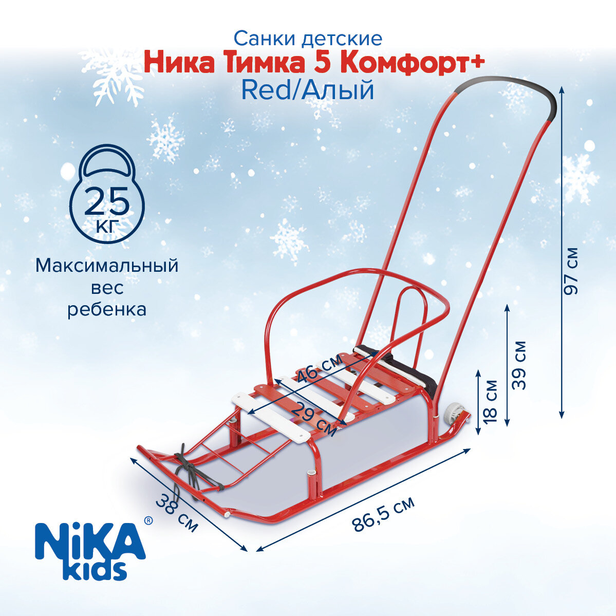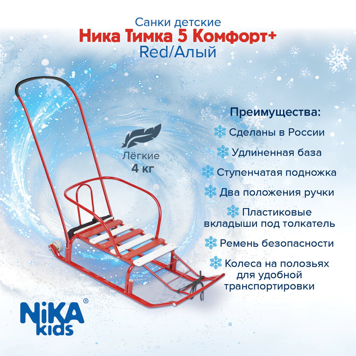Санки Тимка 5 Комфорт, Т5К/Г2, переставная ручка, ремень безопасности, колеса на полозьях, 25 кг, спинка, Nika