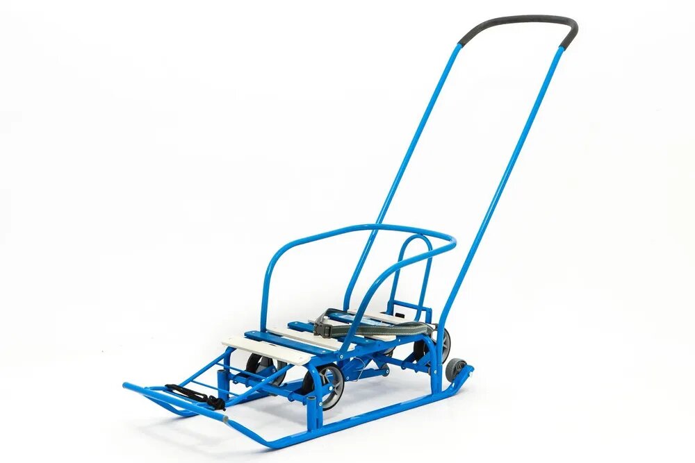 Санки Nika Тимка 5 Универсал голубой с выдвигающимися колесами и ручкой