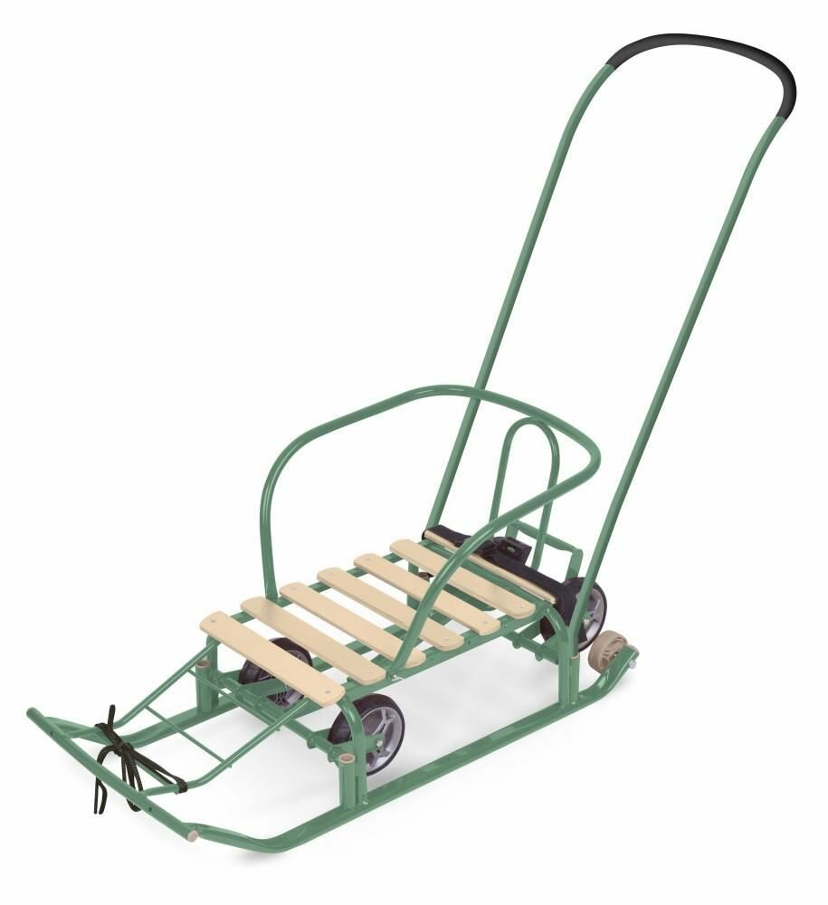Санки Nika Тимка 5 Универсал зеленый, спинка, толкатель, колеса