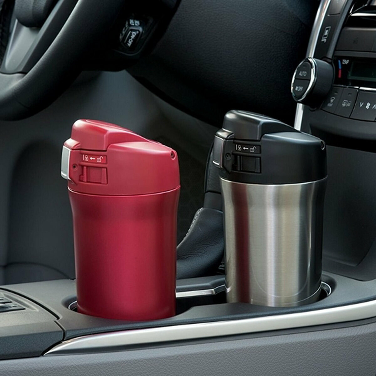 - С легкостью открывается/закрывается одной рукой; - Гигиеничная поилка, защищенная крышкой, как следствие - никакой налипшей пыли; - Откинутая крышка сама фиксируется в полностью открытом положении и не бьет по носу при питье; - Конструкция излива с двойным отверстием помогает жидкости литься равномерно и без всплесков, т.е. при езде за рулем по неровной дороге меньше шансов обжечь язык; - Не течет; - Очень легкая; - За счет минимального зазора между стенками у кружек Zojirushi очень хорошее соотношение внешних габаритов к полезному внутреннему объему. (Чтобы было понятно, о чем речь: на приведенном фото рядом показаны две абсолютно одинаковые по размеру кружки. Вот только у Emsa объем 0,36 л., а у Zojirushi - 0,48 л.) |