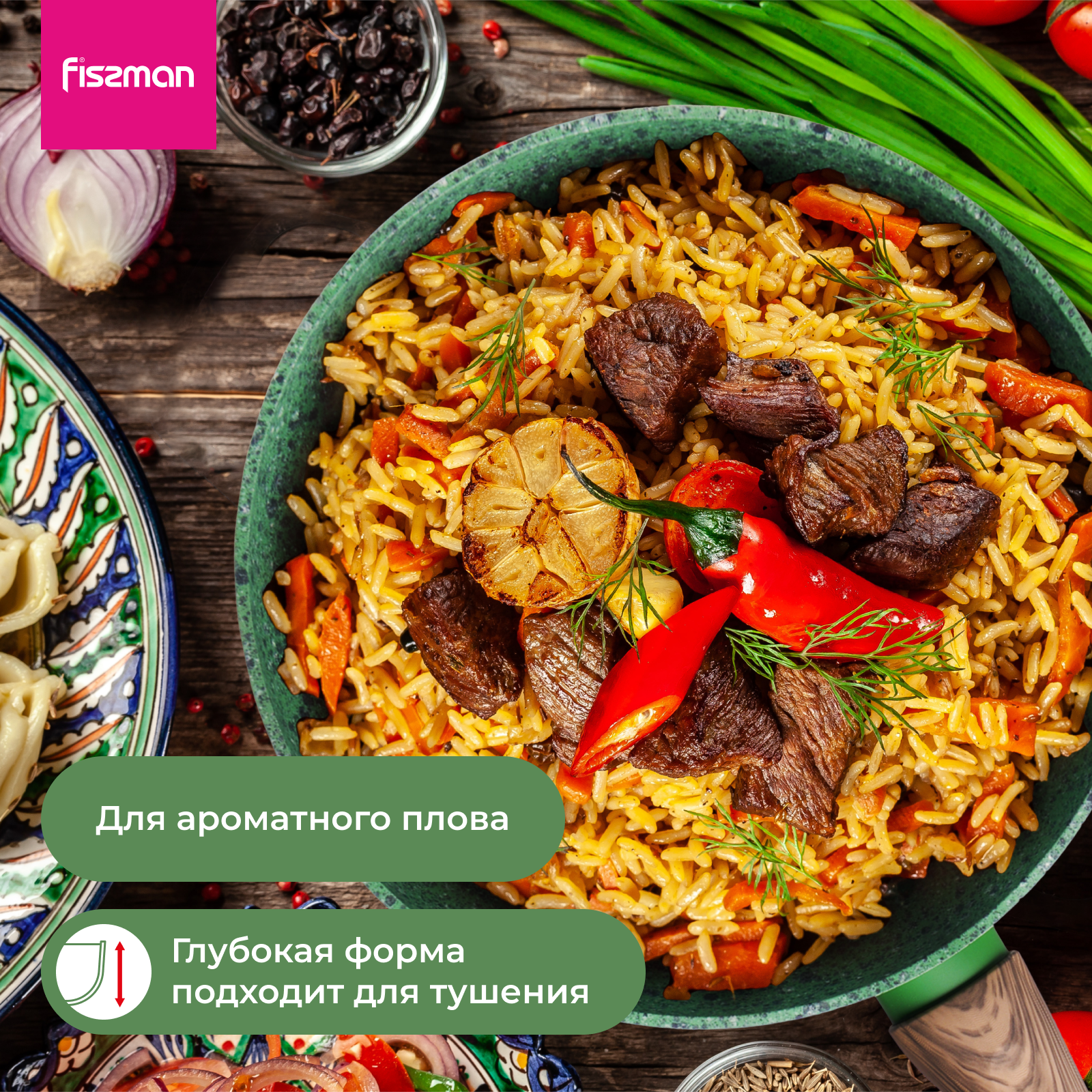 Сковорода-вок с антипригарным покрытием Fissman Malachite, 28 см, подходит для индукционных плит интересное: