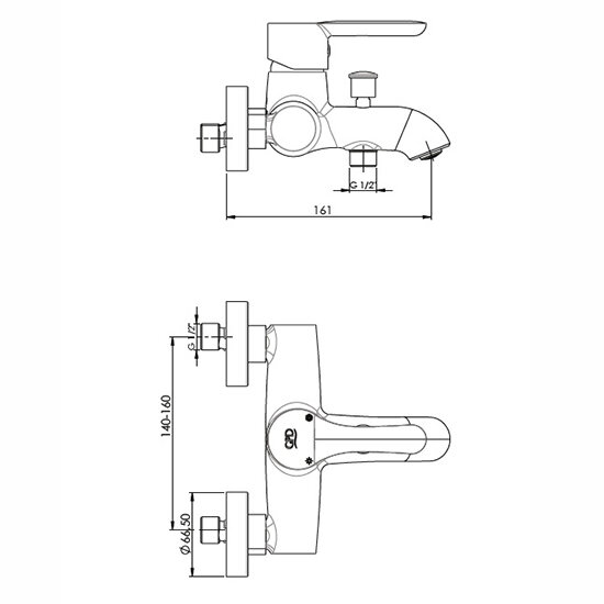 GPD Смеситель Felis MBB75, для ванны и душа, хром