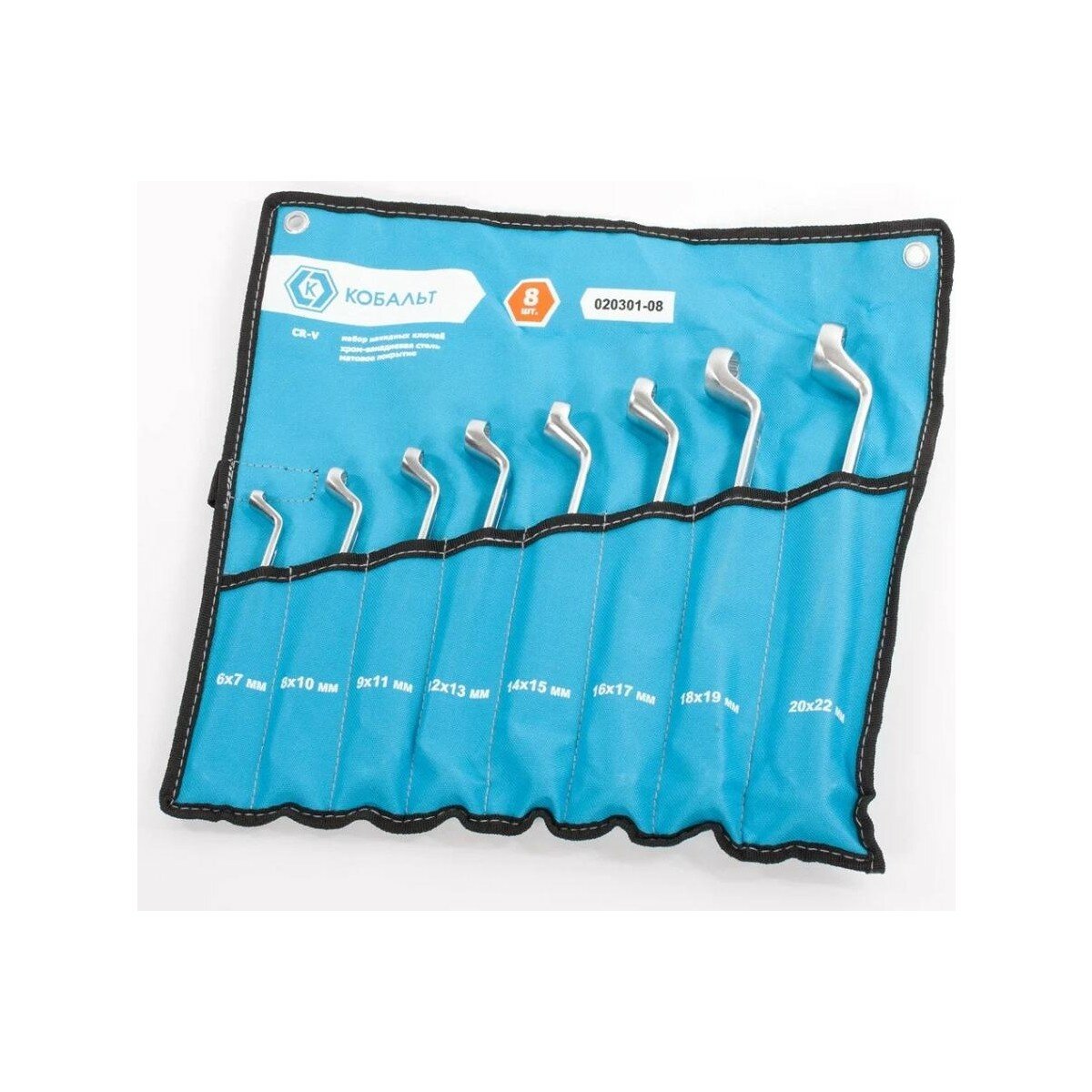 Набор ключей накидных кобальт 6x7,8x10,9x11,12x13,14x15,16x17,18x19,20x22 мм (8 шт.) чехол 020301-08