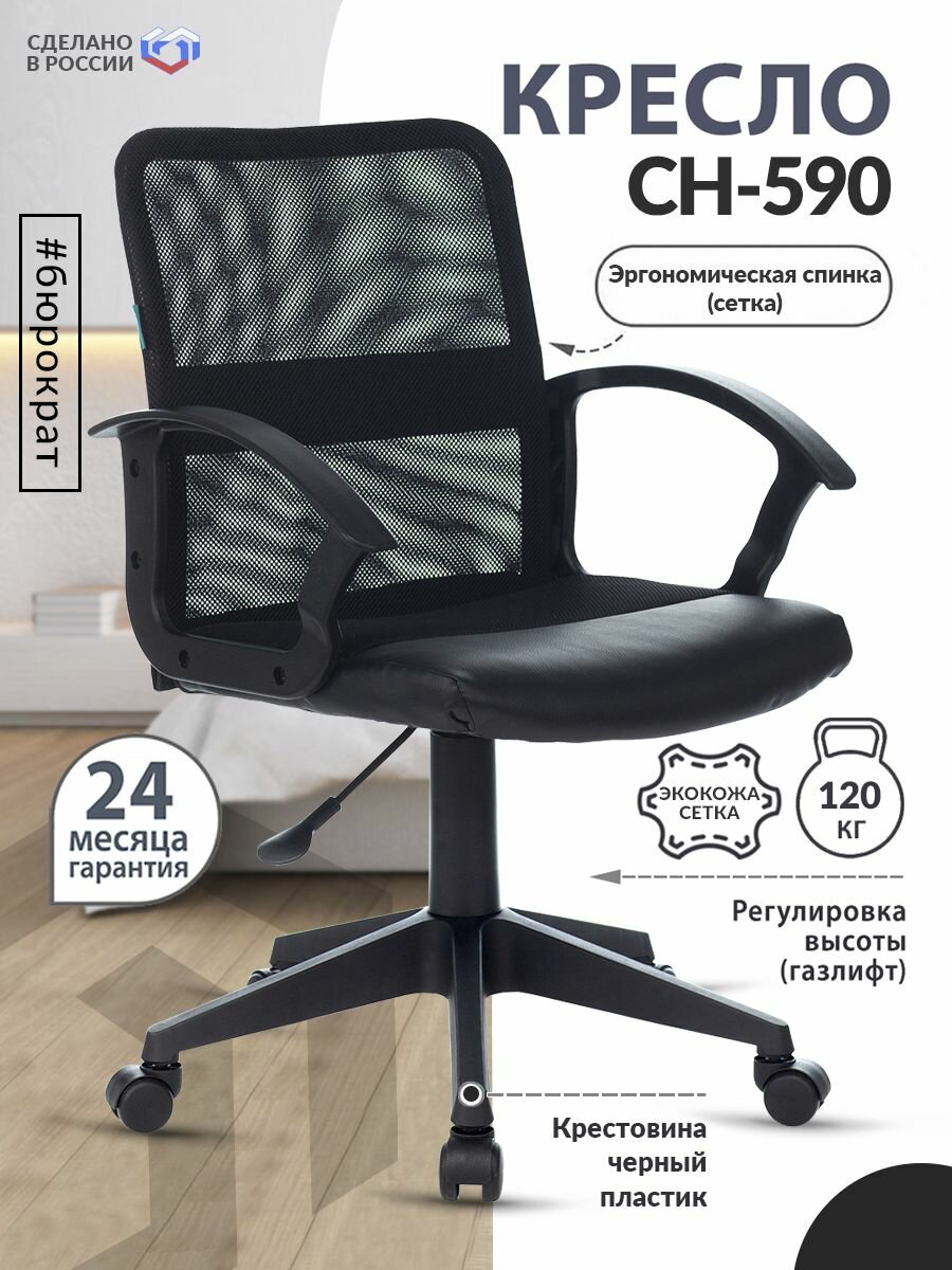 Кресло Бюрократ CH-590, на колесиках, эко.кожа/сетка, черный [ch-590/black]