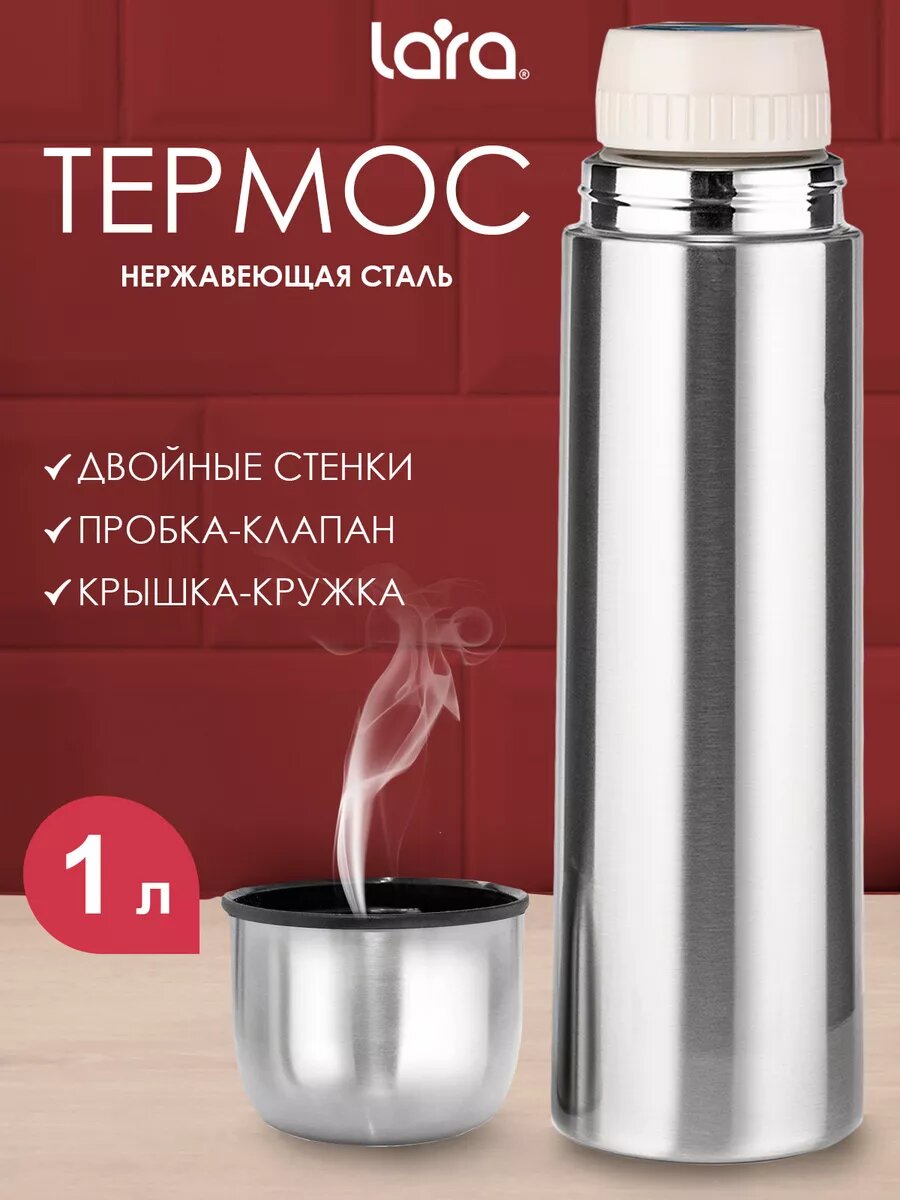 Термос LARA LR04-06 1000мл, сталь, спец пробка, двойные стенки, кнопка, крышка-стаканчик