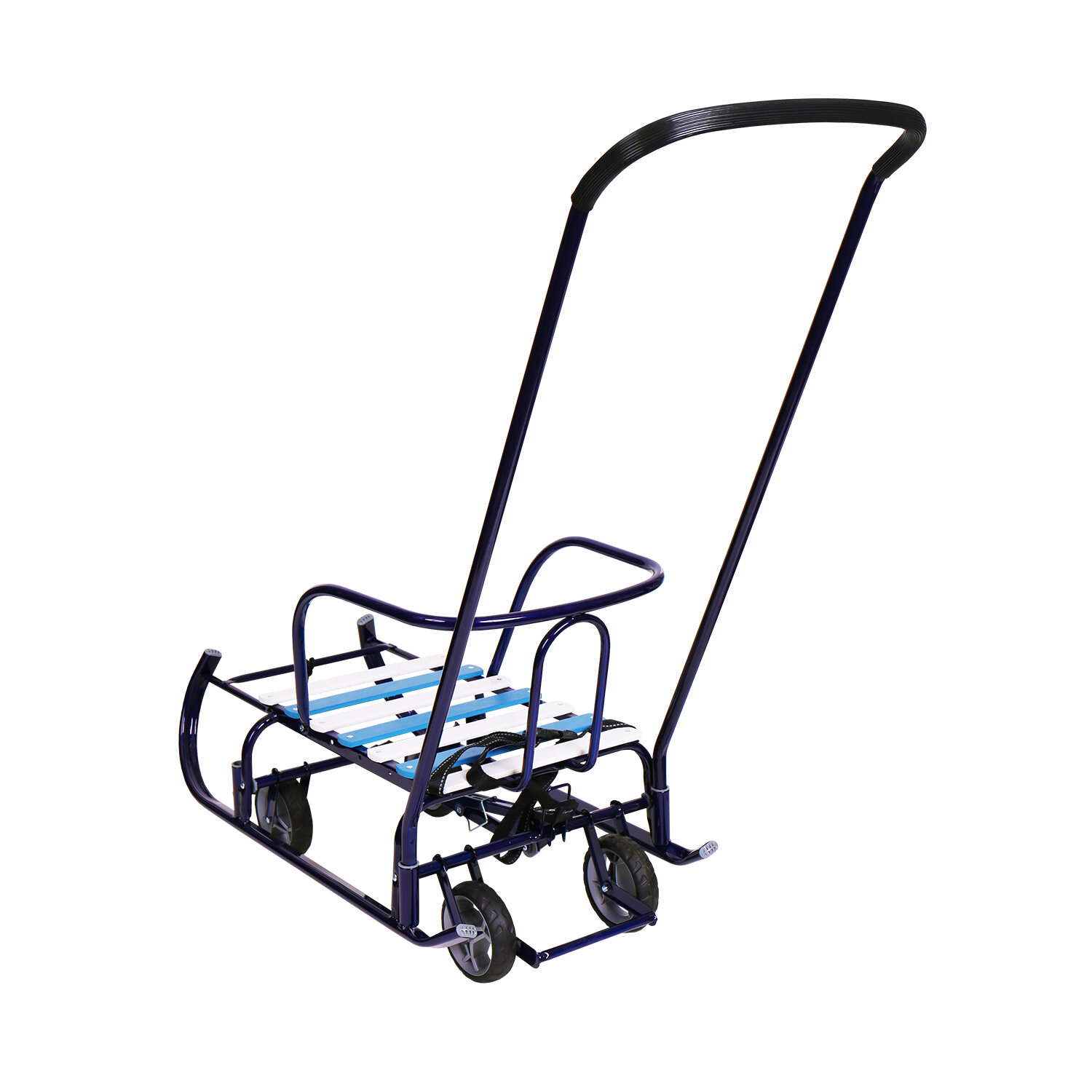 Санки детские с выдвижными колесами, спинкой и ручкой Nika "Тимка 6 универсал" (синий лак)