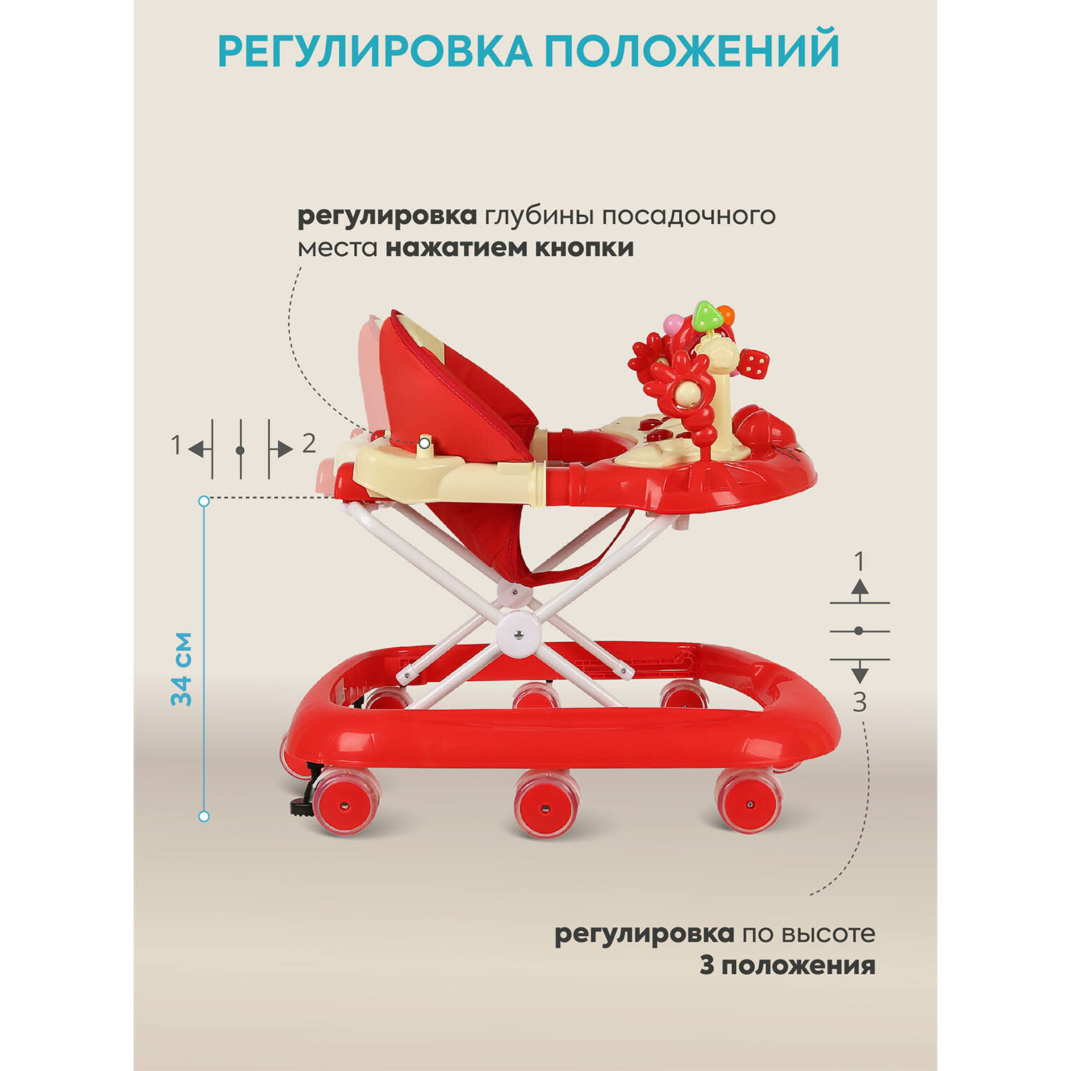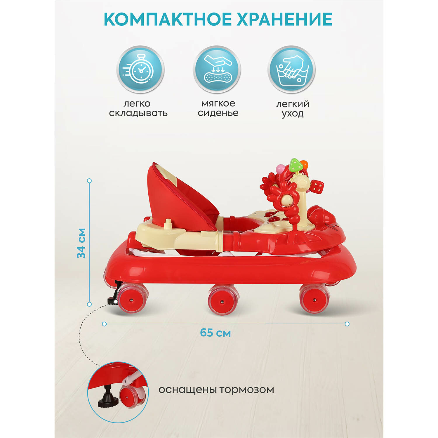 Ходунки «Игротека», 8 силик. колес, муз., свет, красный 2093748