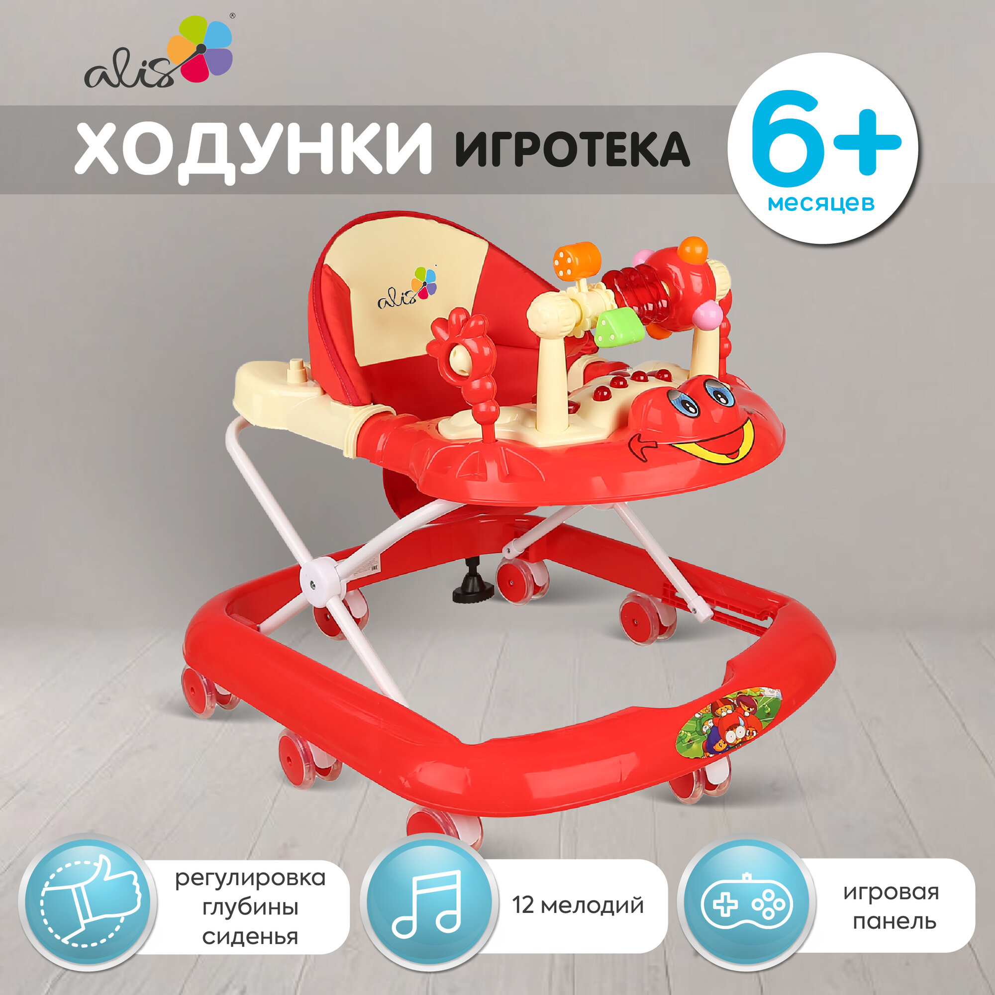 Ходунки Alis "Игротека" (красный), музыкальная панель SR528