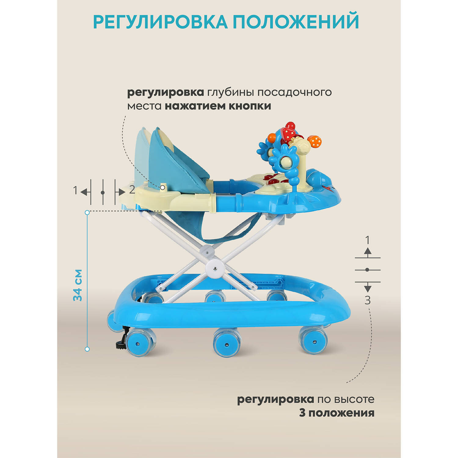 Ходунки «Игротека», 8 колес, муз., свет, синий 2093749