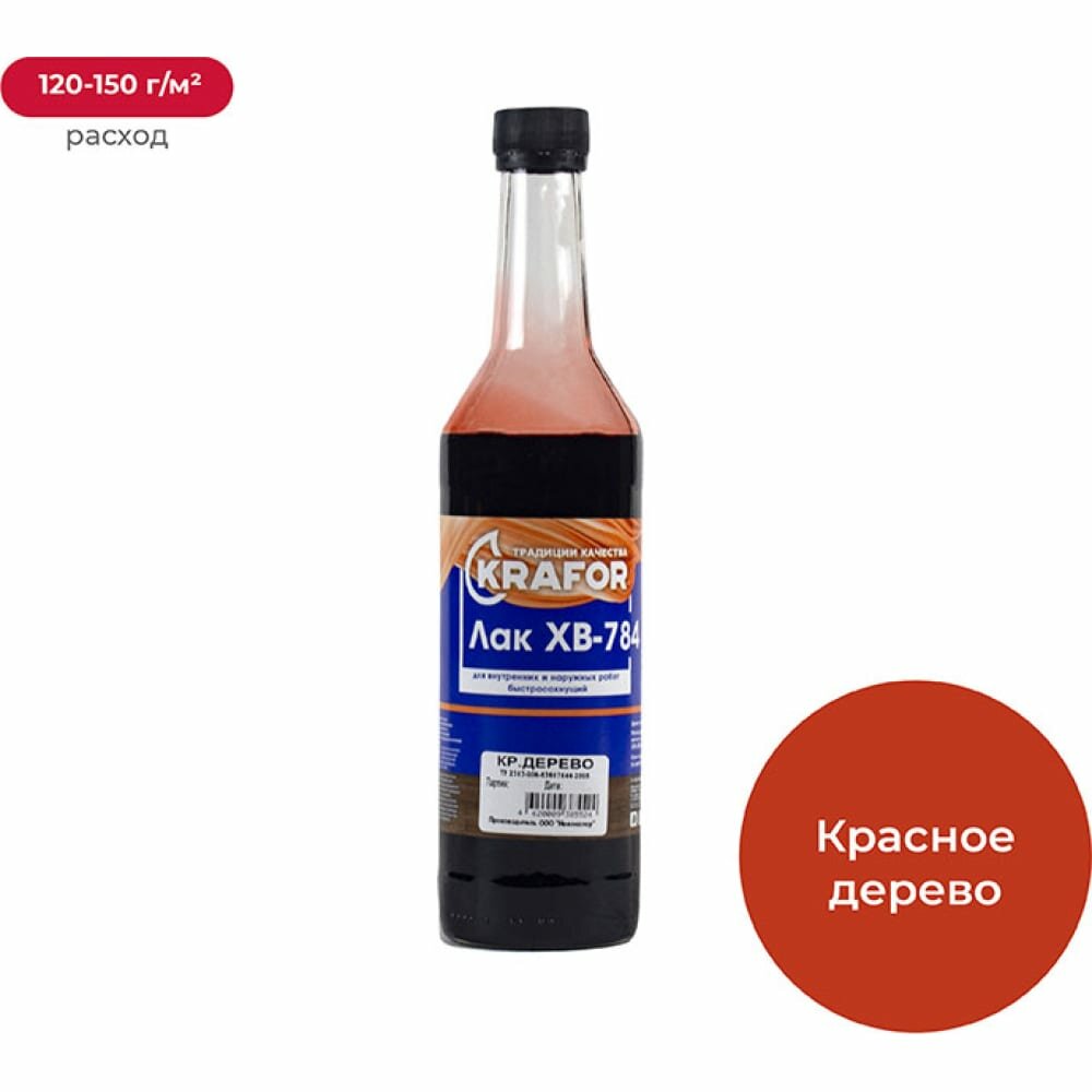 Купить Лак ХВ-784 быстросохнущий Krafor, глянцевый, 0,5 л, красное дерево, 1шт, стеклянная бутылка