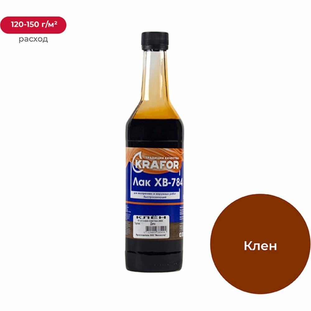Купить Лак ХВ-784 быстросохнущий Krafor, глянцевый, 0,5 л, клен, 1шт, стеклянная бутылка