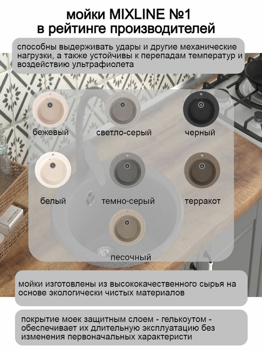 Мойка для кухни из искусственного мрамора круглая MIXLINE ML-GM 10 с сифоном, песочная