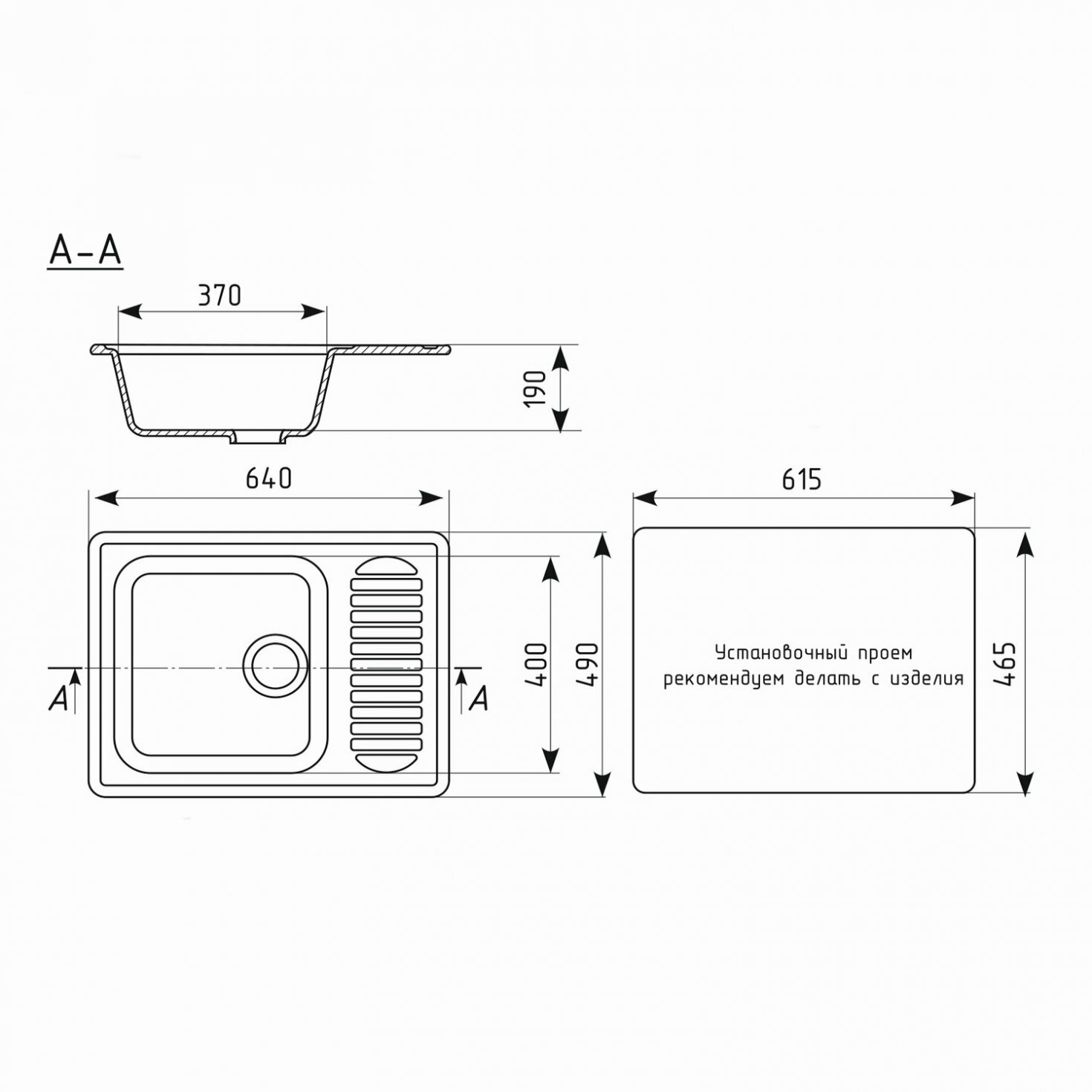Мойка ML-GM18 с крылом, ультра-черная (344), 640*490*190мм NEW