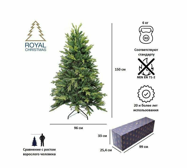 Елка искусственная Royal Christmas Arkansas Premium PVC/PE 150см, арт. 291150