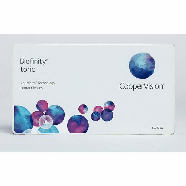 "Астигматические линзы CooperVision Biofinity toric (3 линзы) Ось 130, Оптическая сила цилиндра -0.75 -6.00 R 8.7, ежемесячные, прозрачные"