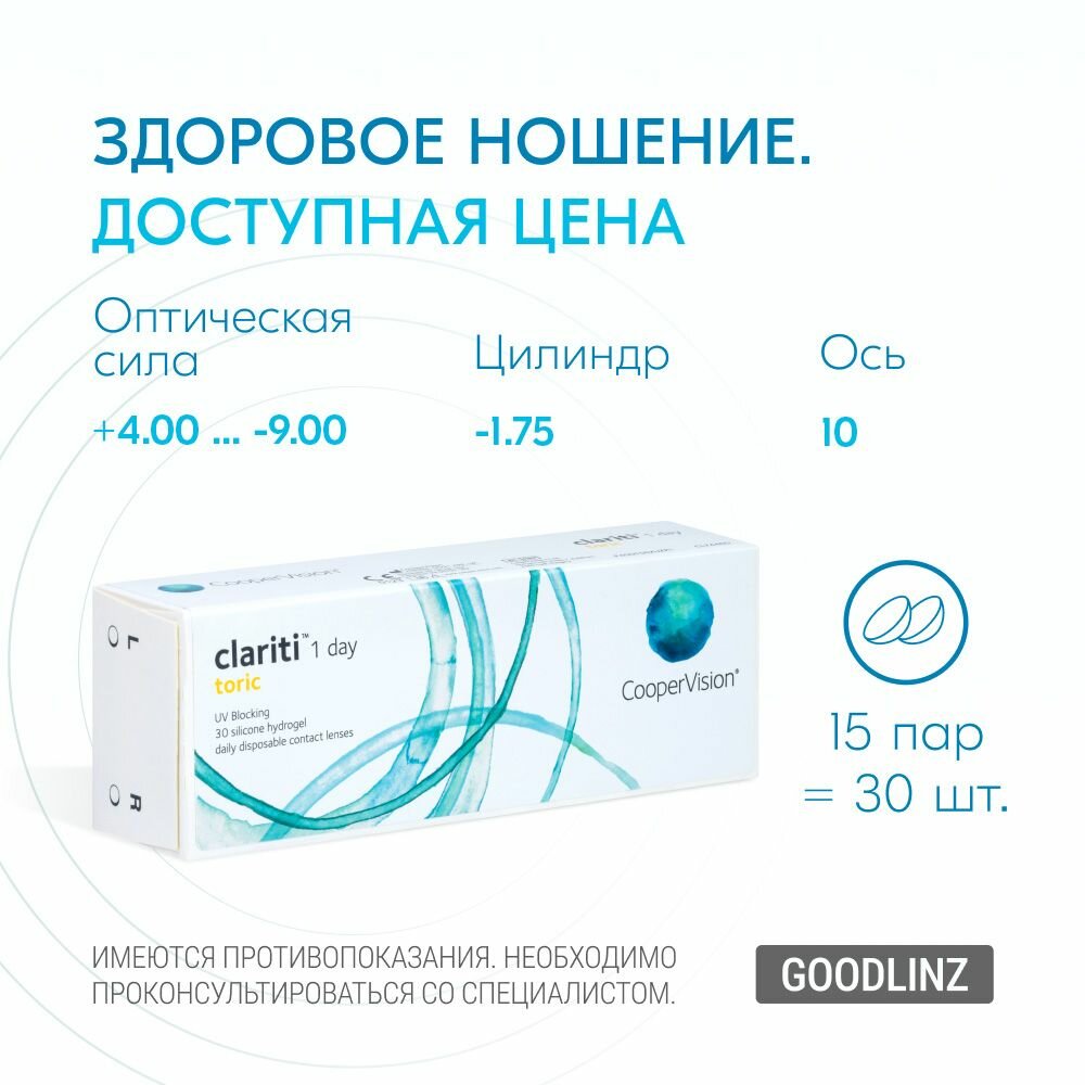 Купить CooperVision clariti 1-day toric (30 линз) BC 8,6 SPH -2.00 CYL -1,75 AXIS 10