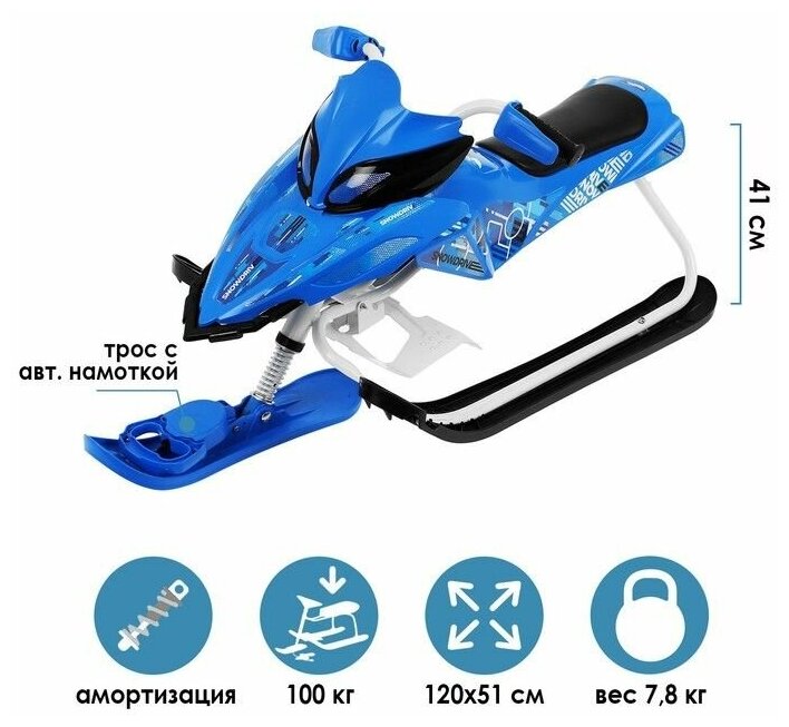 Снегокат для детей НИКА SNOWPATROL, трос с автоматической намоткой, складная спинка, велоруль