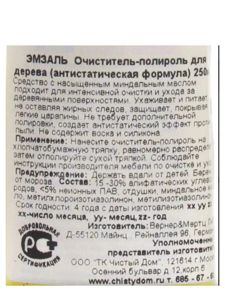 Очиститель-полироль Emsal для дерева, антистатическая формула, 250мл .