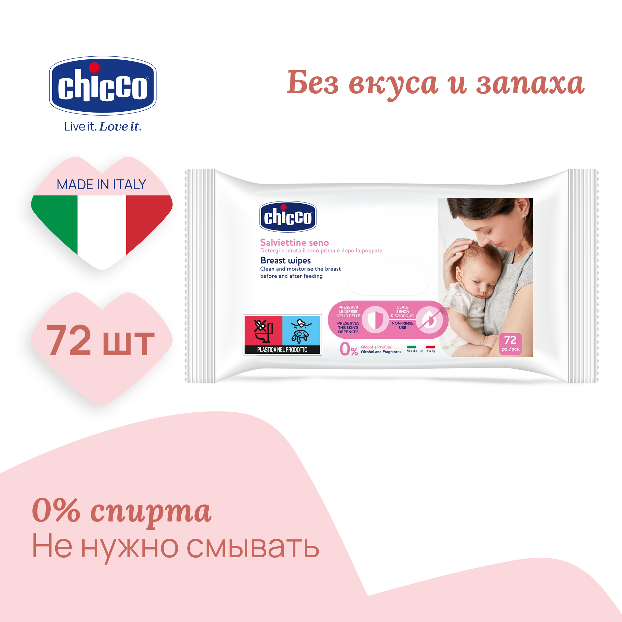 Chicco Салфетки для груди очищающие, 72 шт. в уп., 72 шт.