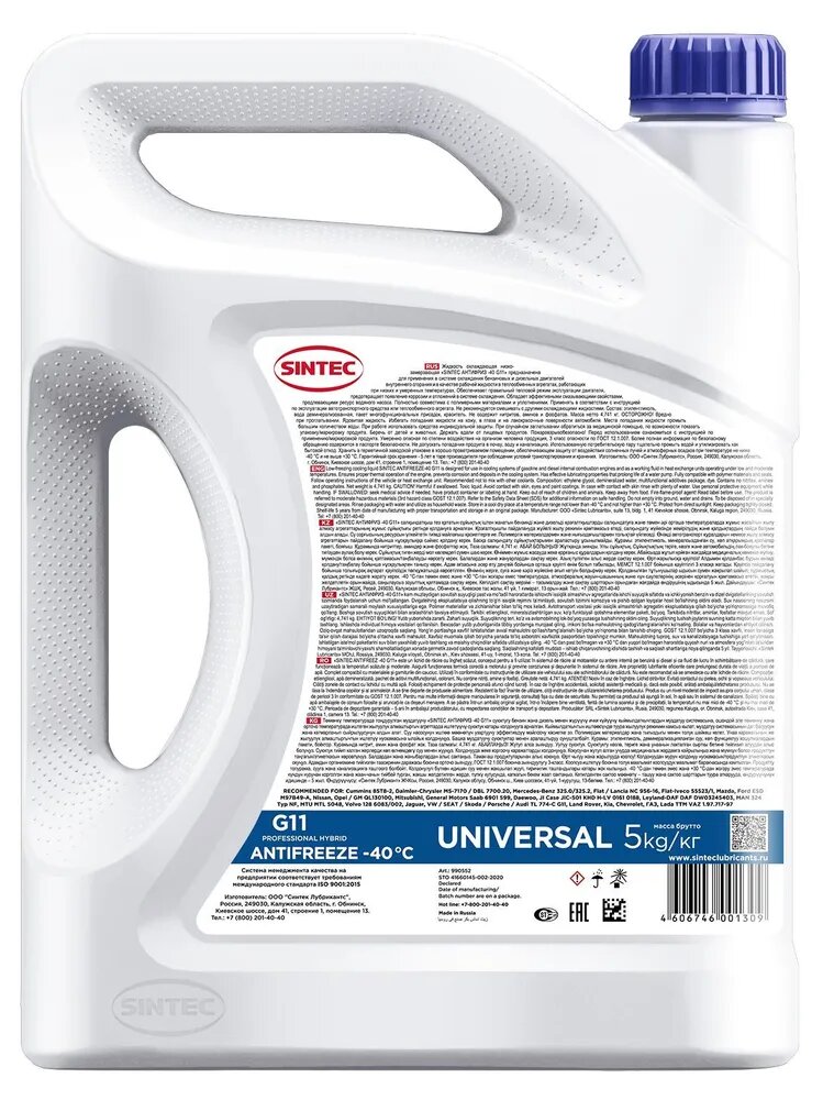 Купить SINTEC 990552 Антифриз Sintec Universal G11 blue -40 5кг 990552