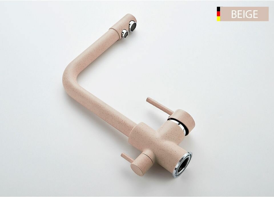 Смеситель для кухни Accoona A5179-4E, с выходом для питьевой воды, латунь, цвет бежевый