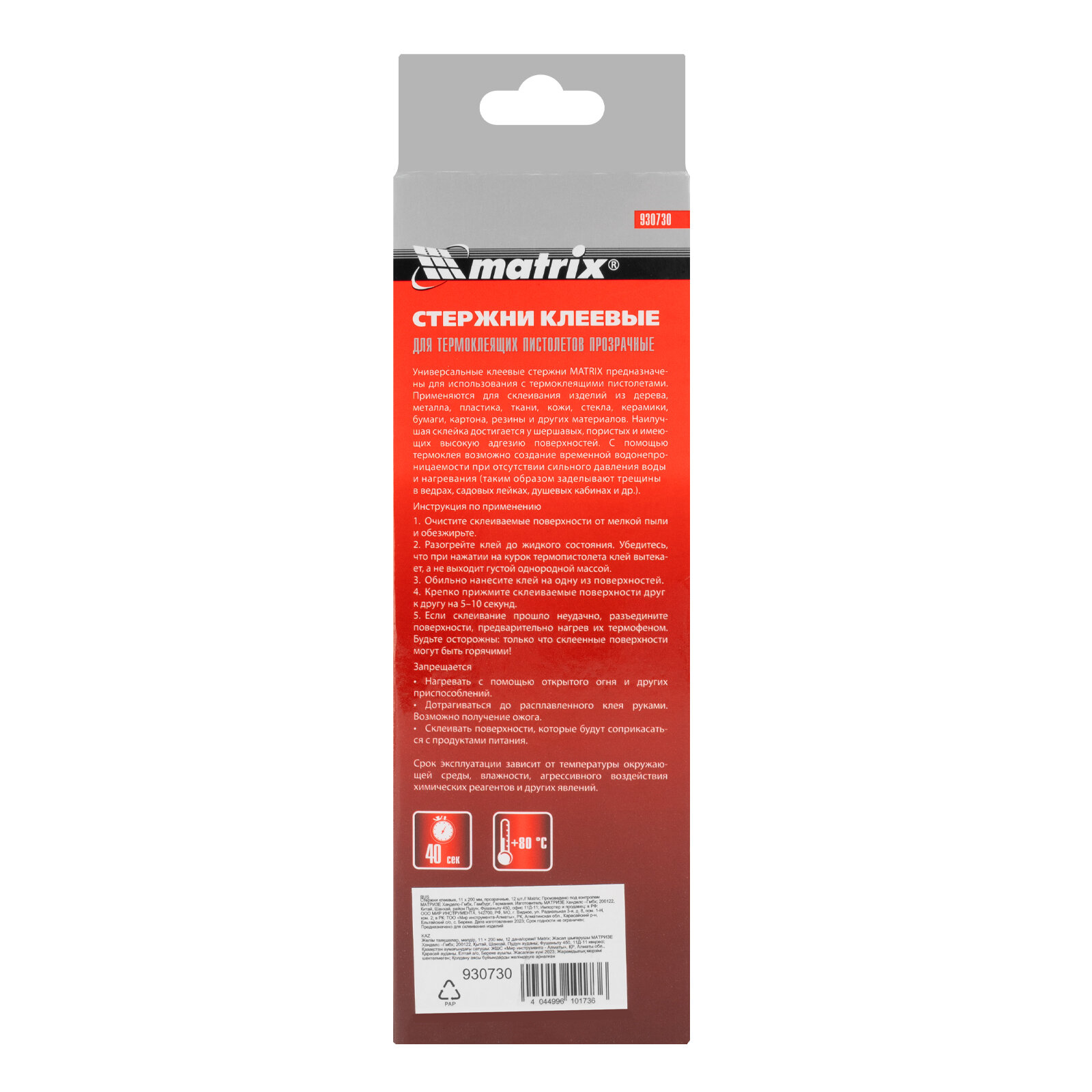 MATRIX 930730 Стержни клеевые, прозрачные, 11x200 мм ., 12 шт. в упаковке MATRIX 930730