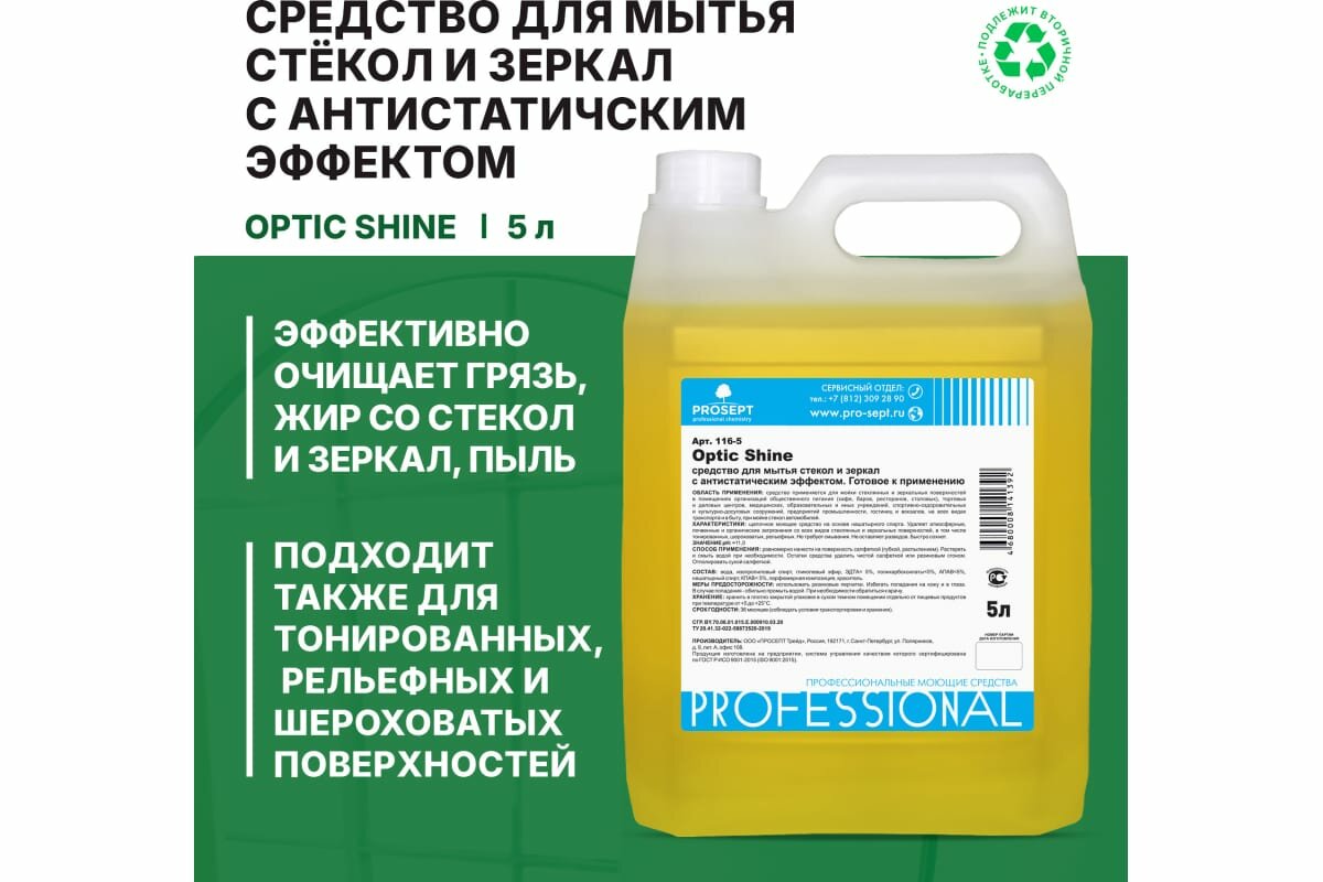Ниже Вы можете прочитать отзывы на Средство для стекол и зеркал Prosept Optic Shine 5 л 4680008141392, ознакомится с подробными характеристиками, посмотреть интересные обзоры и фотографии на Средство для стекол и зеркал Prosept Optic Shine 5 л 4680008141392.