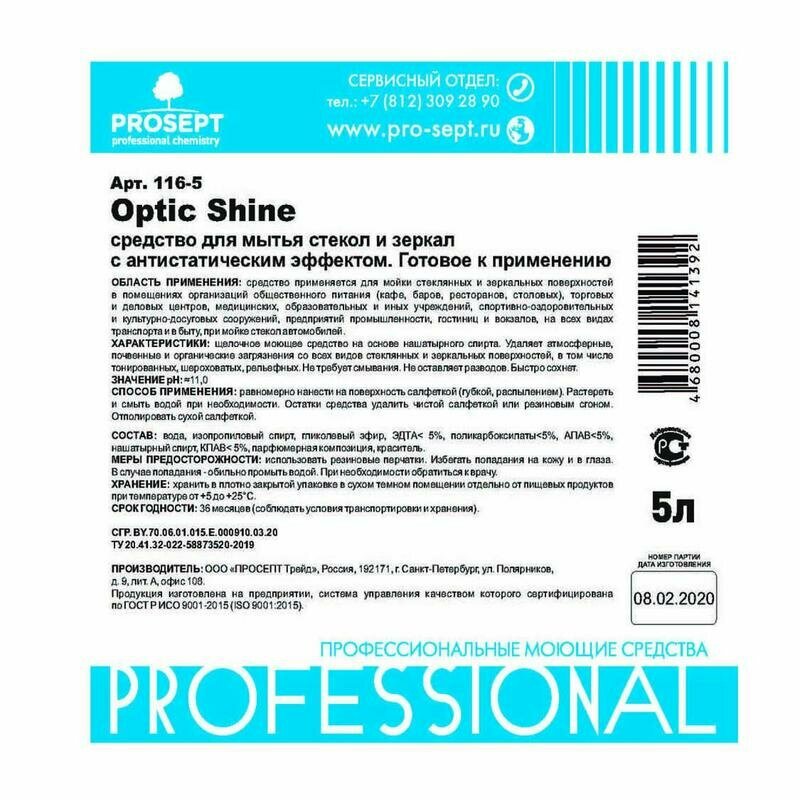 Купить Средство для стекол и зеркал Prosept Optic Shine 5 л 4680008141392