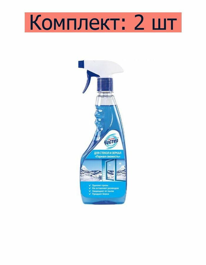 Купить Мистер Чистер для мытья стекол и зеркал Горная свежесть, 500 мл, 2 шт