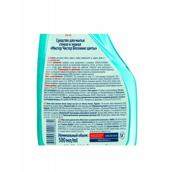 Невская косметика Средство для мытья стекол и зеркал Мистер Чистер с ароматом весенних цветов 500 мл