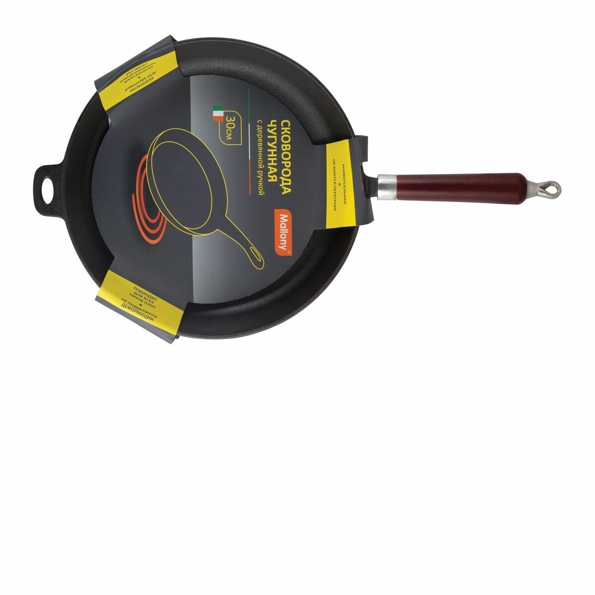 Сковорода чугунная Mallony CIF30-W с деревянной ручкой, диам-30 см (983006)