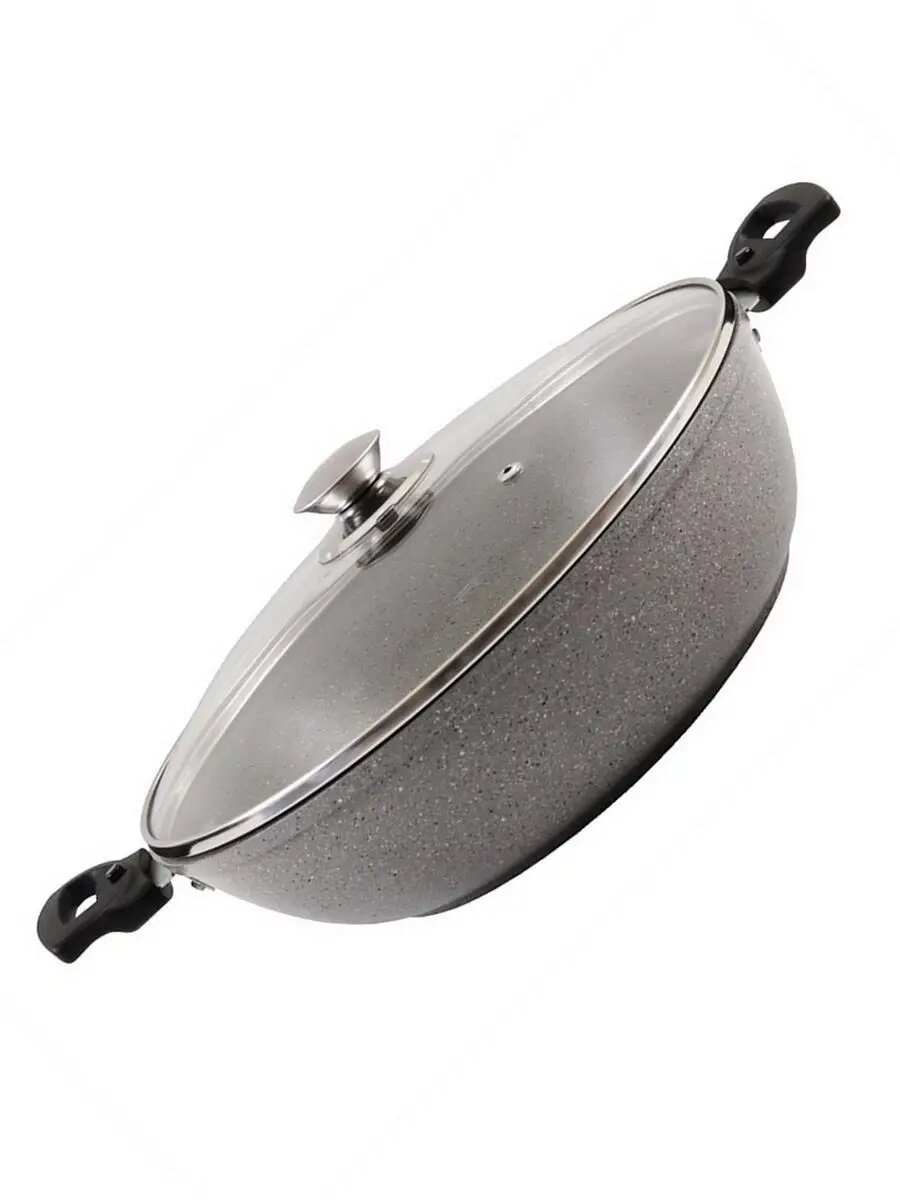 Сотейник 30*8,5см со стеклеклянной крышкой АП (темный мрамор) смт308а