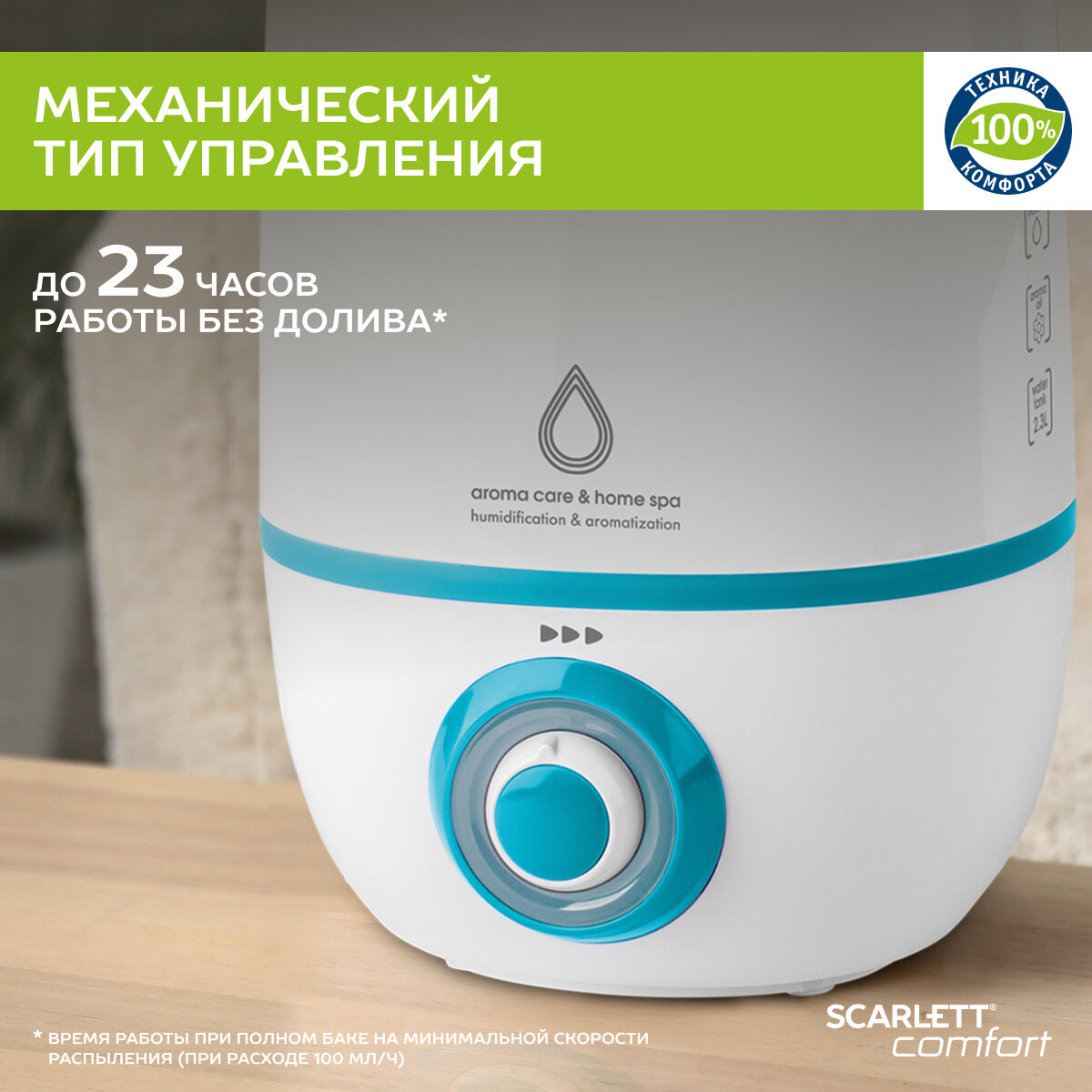 Увлажнитель воздуха SCARLETT SC-AH986M16, объем бака 2,3 л, 23 Вт, арома-контейнер, белый, 455460