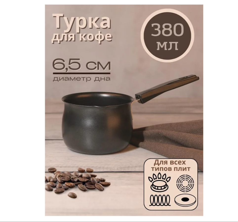 Купить Кофеварка/турка 380мл. из углеродистой стали , с бакелитовой ручкой , с антипригарным покрытием . Подходит для всех типов плит ( включая индукционные)