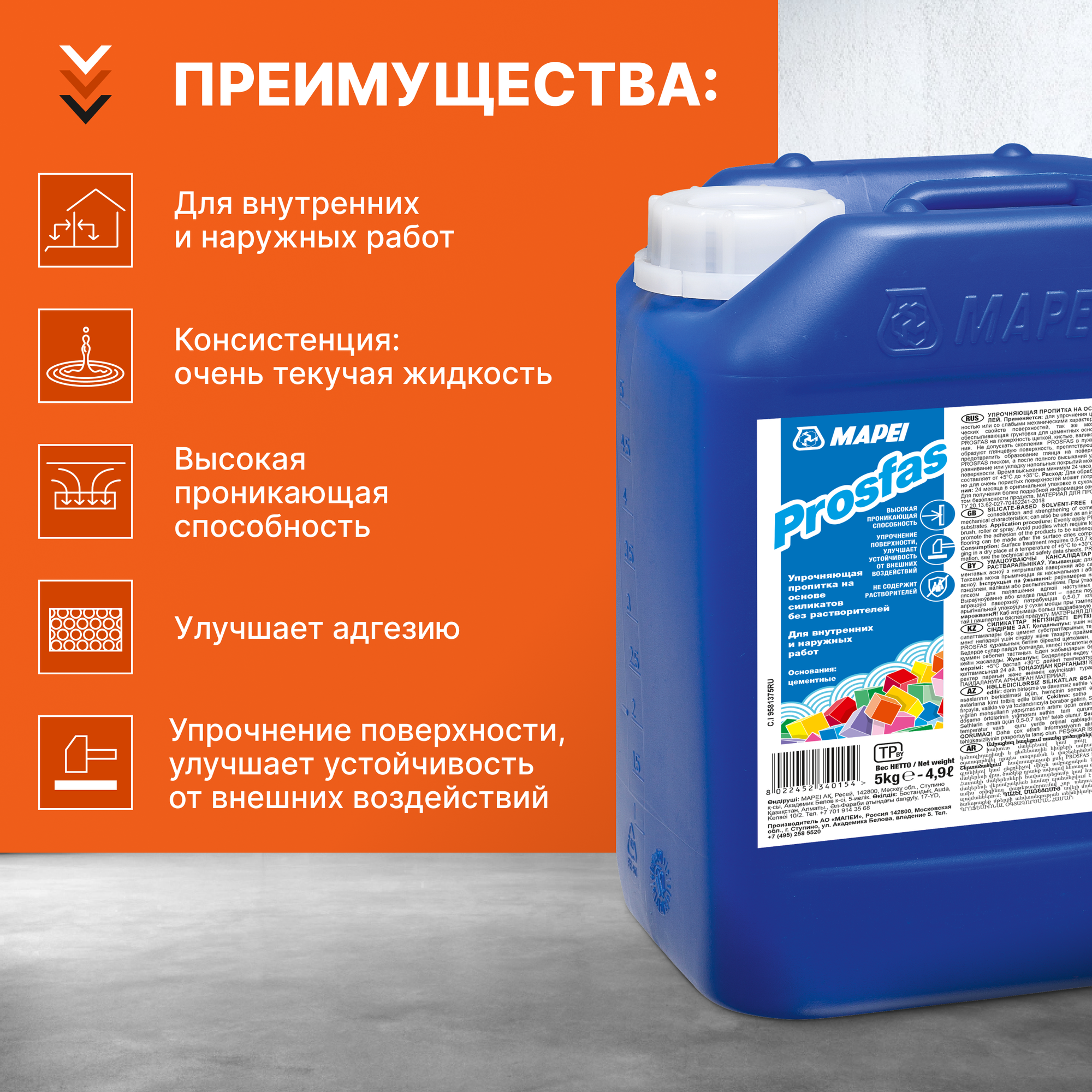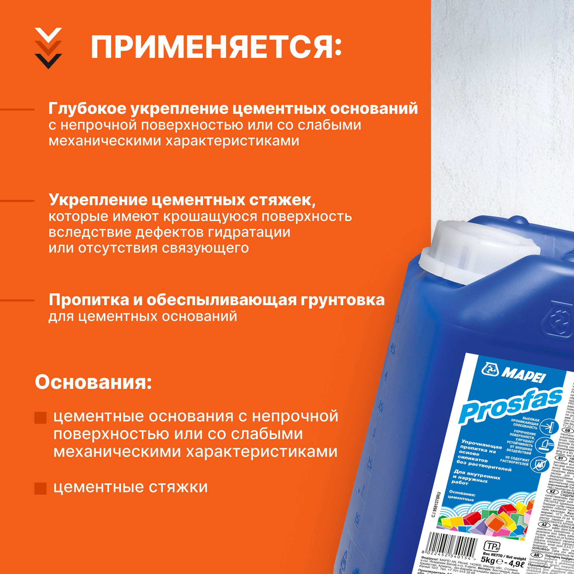 Купить Укрепляющая пропитка MAPEI PROSFAS, 5 кг