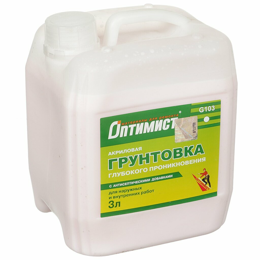 Оптимист Грунтовка глубокого проникновения акриловая G103 для наружных и внутренних работ 3л OPG012
