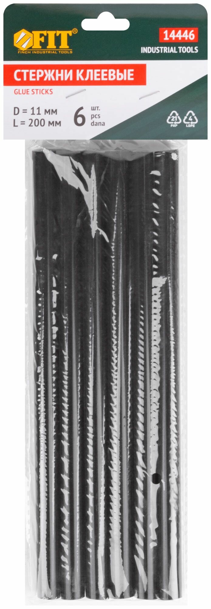 Стержни клеевые черные 11х200 мм, 6 шт. FIT 14446