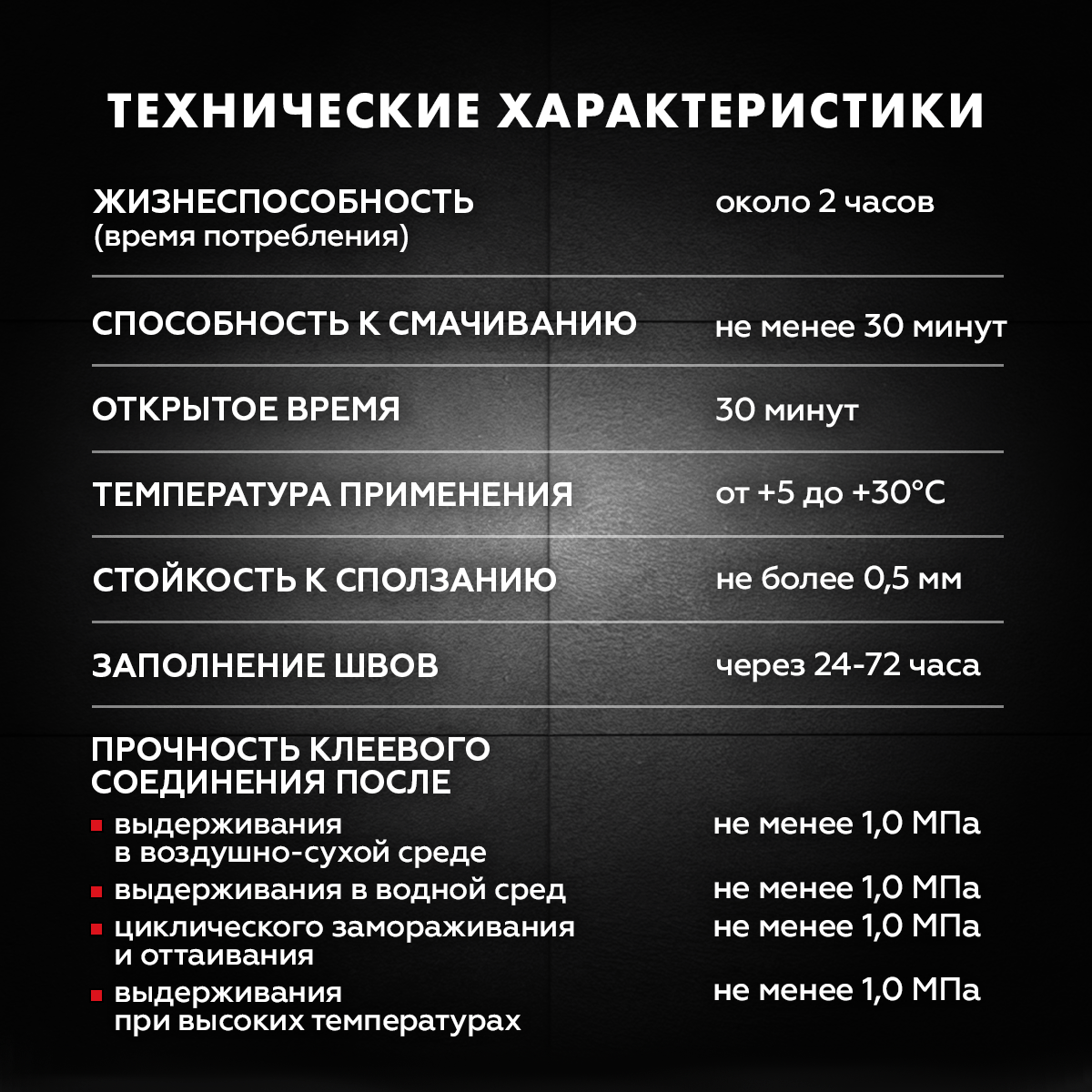 | Минимальный расход смеси (слой 1 мм) | 1 кг/м² |
