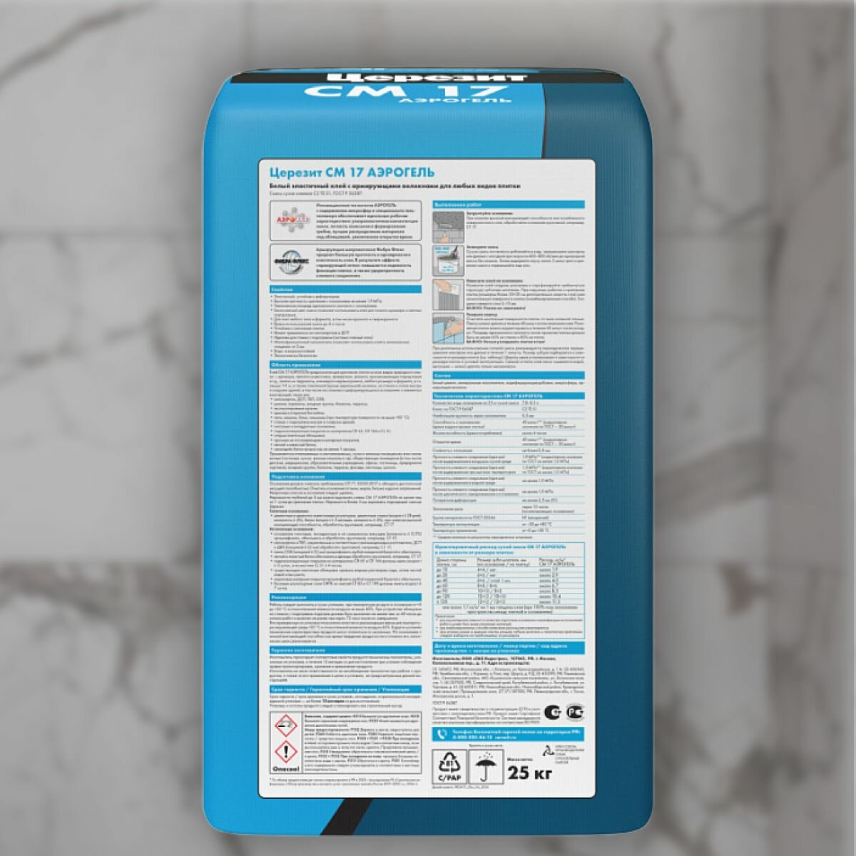 Клей для плитки Церезит CM 17 Аэрогель, 25 кг