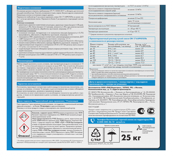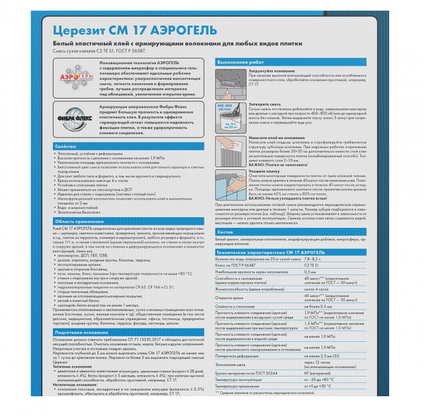 СохранитьКлей для плитки эластичный Белый Церезит CM 17 Аэрогель, 25кг интересное:
