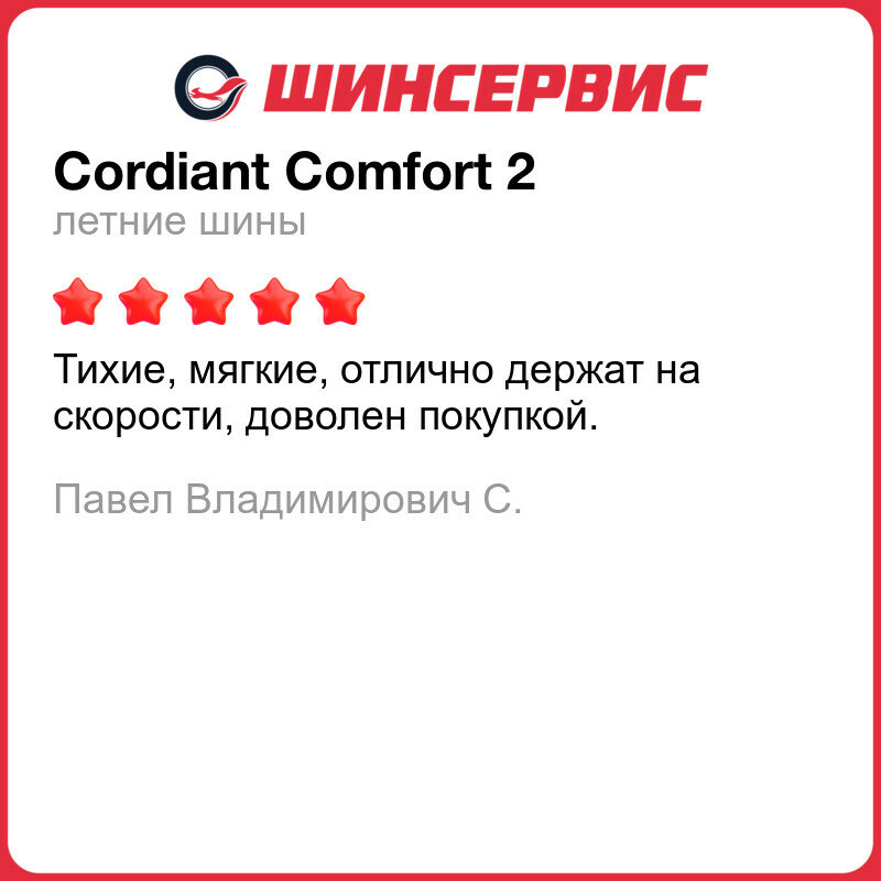 Шина Cordiant(Кордиант) COMFORT 2 195/65 R15 95H летняя