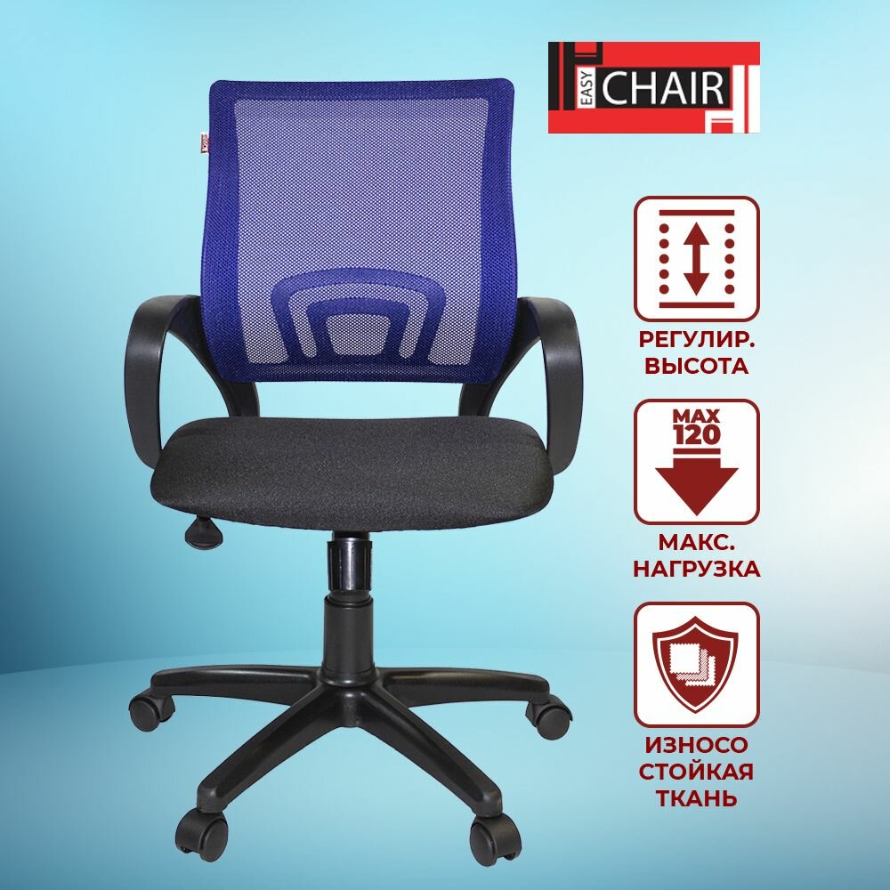 Кресло компьютерное Easy Chair 304 LT, офисный стул на колесиках, сетка/ткань, черный/синий