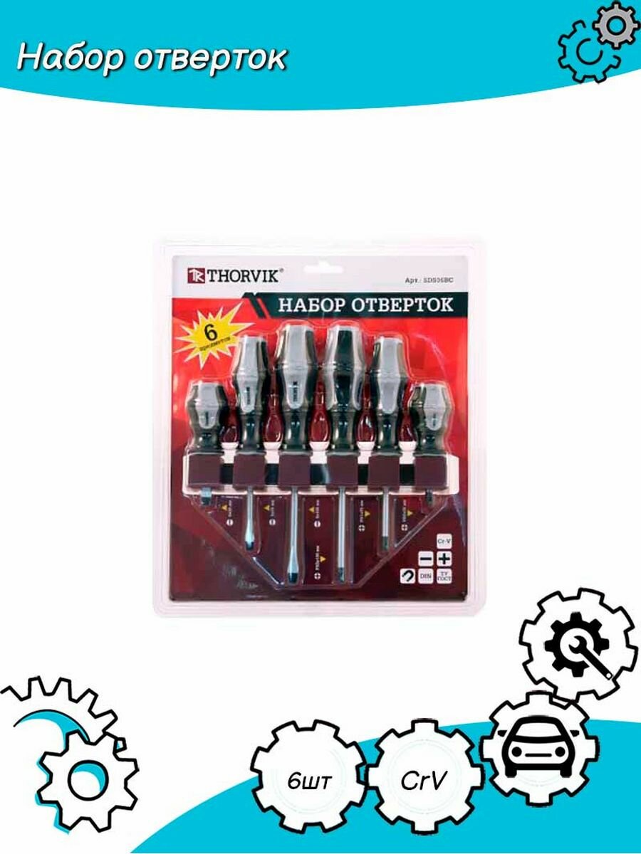 Набор отверток Thorvik SDS06BC, 6 предм., серебристый