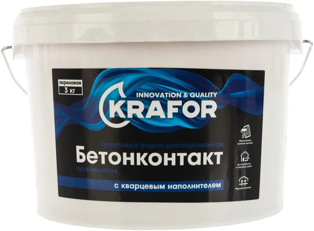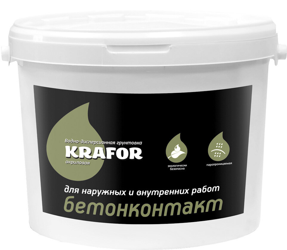 Грунтовка водно-дисперсионная бетонконтакт Krafor, 3 кг, пластиковое ведро интересное: