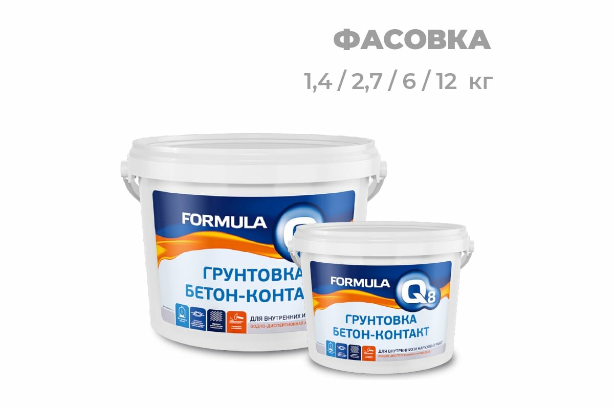 Грунтовка воднодисперсионная, акриловая, Formula Q8, бетоноконтакт, 1.4 кг